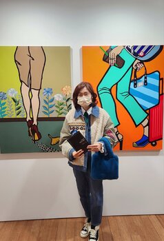 Mia Kim ist eine preisgekrönte südkoreanische Malerin, deren Kunst in zahlreichen Einzel- und Gruppenausstellungen im Inland sowie in Japan und den USA gezeigt wurde. Ihre Arbeiten drücken das tägliche Leben des zeitgenössischen Menschen aus, der ständig in einer sich schnell verändernden Stadt beschäftigt ist. Kims Erzählungen werden durch einfache Formen, lebendige Farben und kräftige Linien vermittelt. Sie verwendet sowohl Acryl als auch Öl auf Leinwand.