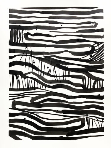 In diesem Stück habe ich die Fließfähigkeit und den Kontrast von Tusche genutzt, um eine dynamische abstrakte Landschaft zu schaffen. Kräftige, wellenförmige Linien bewegen sich über das Papier und ahmen den rhythmischen Puls des Meeres oder das Flüstern des Windes nach. Jeder Strich ist ein Ausdruck von Emotionen, der so gestaltet ist, dass er die innersten Gefühle des Betrachters widerspiegelt und zur Selbstbeobachtung einlädt. Das Kunstwerk verkörpert… Bewegung und Harmonie und verleiht jedem Raum, in dem es sich befindet, einen allgegenwärtigen Energieschub.