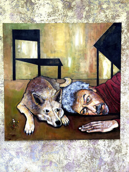 Ein Kunstliebhaber, Kauf getätigt am September 2024: "Window with loneliness view", Acryl auf Leinwand , 27,6 x 39,4 in