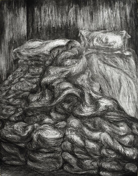 « Zwischen dem Endlichen und dem Unendlichen, zwischen dem Unterstellen und Verbergen, zwischen der Illusion der Schönheit und dem Drama des Realen, der Verfolgung der reinen erhabenen Stase des Objekts, erwärmt, aber nicht verbrannt durch meine unvermeidlichen Ängste. »