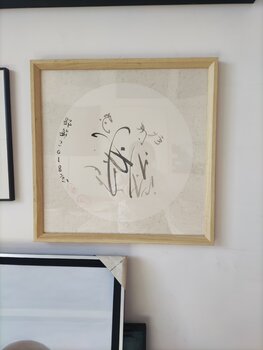 Dieses abstrakte Stück wurde mit fließenden Tintenstrichen auf Papier gefertigt und ist ein Tanz der Spontaneität und Anmut. Jede Zeile ist voller Leben und fängt Momente ruhiger Bewegung ein. Es ist eine intime Widerspiegelung des leisen Flüsterns der Seele, das mit der inneren Ruhe eines Menschen in Resonanz treten soll. Wenn Sie dies in Ihrem Raum berücksichtigen, versprechen Sie sich eine tägliche Portion Harmonie und inspirierte Kontemplation.