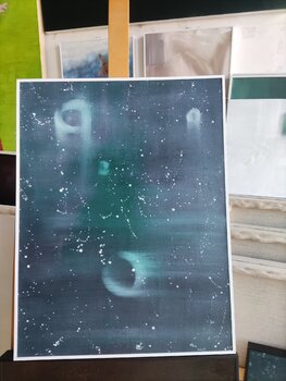Werk auf Keilrahmen. Kunstwerk gerahmt.