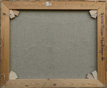 Das Bild ist mit breiten, definierten Pinselstrichen auf Leinwand gearbeitet. Die Leinwand ist aus dickem, reinen Leinen, so dass die typische Struktur der Leinenweberei gut sichtbar ist und einen schönen, leicht dreidimensionalen Effekt ergibt.