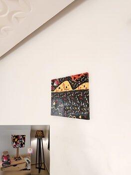 In dieser Arbeit habe ich die Tiefen der kosmischen Energie durch eine abstrakte und symbolische Interpretation erforscht. Mit Öl auf Baumwolle habe ich eine Landschaft aus dynamischen Formen und leuchtenden Farben geschaffen, um den unaufhörlichen Fluss und die Kraft des Universums darzustellen. Dies ist ein Stoffrest, aus dem ich in den Jahren 2020–2021 Leuchten hergestellt habe. Jedes Element ist so verschachtelt, dass es eine unendliche Verbindung… zwischen dem Sichtbaren und dem Unsichtbaren suggeriert und den Betrachter zu einer inneren Reflexion über die Komplexität unseres Kosmos einlädt.