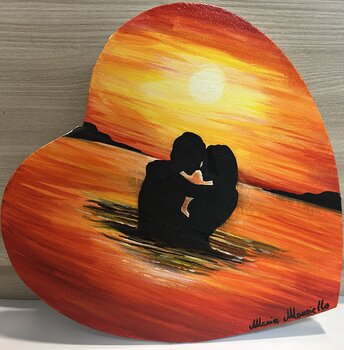 Mit dieser Arbeit wollte ich von der Liebe in ihrem reinsten Moment erzählen: zwei Seelen, die sich in der goldenen Stille eines Sonnenuntergangs umarmen. Die Herzform ist nicht nur ein Symbol, sondern ein integraler Bestandteil des Gefühls, das ich vermitteln wollte.