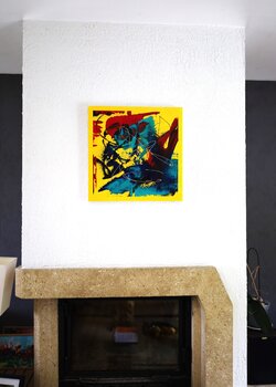 In dieser Arbeit ließ ich meiner lebendigen gestischen Energie, meinen spontanen Emotionen, freien Lauf. Die Leinwand evoziert eine explosive Farbkollision, bei der leuchtendes Gelb tiefes Blau und leidenschaftliches Rot umarmt. Jeder Blick fängt diese lebendige Dynamik ein und spürt sie. Dank der Essenz von Bewegung und innerem Chaos findet sie in der Abstraktion ihre eigene Geschichte.