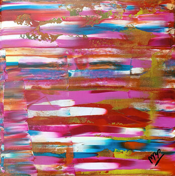 Mehrfarbiges Gemälde aus Acryl in Rosatönen und ähnlichen Bereichen.