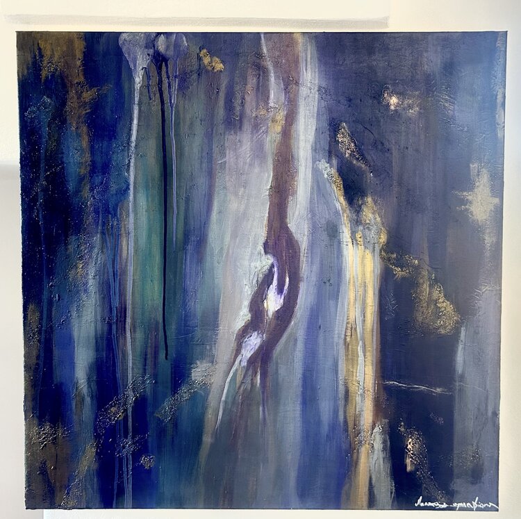 „ANIMA/ANIMUS“ ist von Jungs Konzept der archetypischen Träume inspiriert. In meinen Kunstwerken übersetze ich mit Farben, Pigmenten und Pinseln die zwei Seiten unserer Psyche: das Männliche und das Weibliche, das Reale und das Imaginäre, die Seele und die Materie. Dieses Kunstwerk ist eine Verschmelzung von rationalem Denken, von Yin und Yang, von der Kraft des Loslassens und der Hingabe an das, was ist. Die Zeit steht still, der Geist ist ruhig,… doch die Seele ist lebendig und ewig.