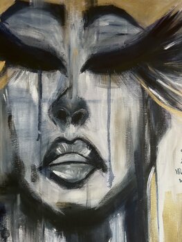 Katharsis steht für die Meditation eines Künstlers, einen Moment des Gebets und der Heilung. Wie auf dem Kunstwerk geschrieben steht, heilen wir Künstler durch das Schaffen von Kunst. Unsere Form des Gebets ist das Schaffen. In unserem Prozess der Katharsis erschaffen wir nicht nur, sondern tragen zur Erlösung der Welt bei. Dieses erste Porträt der Serie „Alter Ego“ ist ein Spiegelbild meiner selbst, meiner Kämpfe, meines Kummers, meiner Schmerzen,… meiner Gebete, meiner Hoffnungen, meiner Träume und letztlich meiner Schöpferkraft, bis ich meine Tränen, meine Wunden und die Erwartungen der Außenwelt geheilt habe, denn meine Kraft kommt von innen. Es ist eine Botschaft der Macht, der Stärke und der Erlösung.