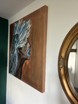 Werk auf Keilrahmen. Kunstwerk gerahmt.