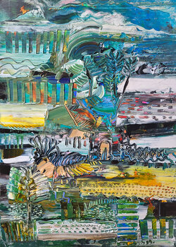 Ein Kunstliebhaber, Kauf getätigt am Oktober 2023: "Un pays au devant de soi", Acryl auf Leinwand , 11,8 x 15,7 in