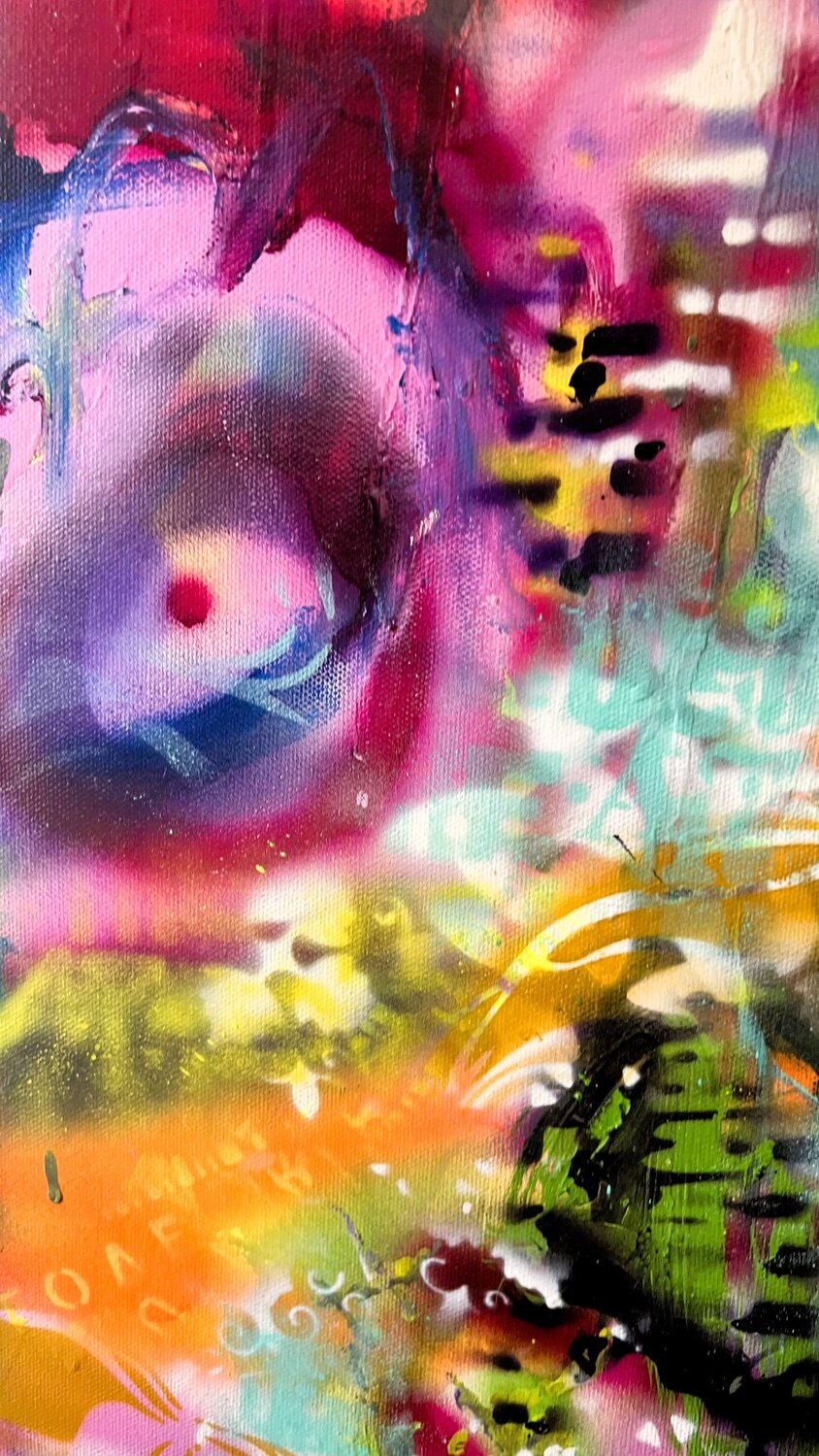 Sie kreiert ohne feste Richtung und lässt sich von der Leinwand leiten, bis sich ein unerwartetes Gleichgewicht oder kontrolliertes Chaos offenbart. Durch diese intuitive, fast meditative Herangehensweise entstehen Werke ohne Turbulenzen, dafür aber aufgeladen mit Emotionen, Stille und verborgenen Bedeutungen.
