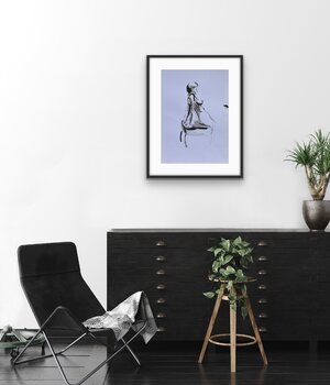„The Lucky Girl“ fängt einen flüchtigen filmischen Moment voller subtiler Emotionen und unterschwelliger Spannung ein. Die Figur steht ruhig, leicht nach vorne gebeugt – eine Haltung, die zugleich zart und kraftvoll wirkt. Ihre Präsenz ist rätselhaft, als wäre sie zwischen Gedanken und Bewegung gefangen. Die Tuschezeichnung ist spontan und doch gewollt, wobei Kontrast und Linienführung ein starkes, intimes Statement bilden.