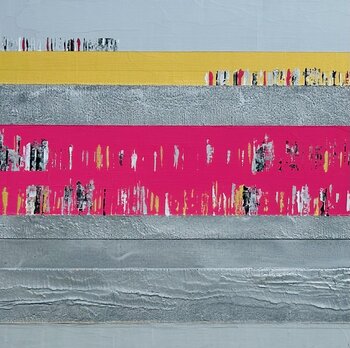 Nadine Hardys Absicht ist es, durch Farbe Harmonie in Ordnung oder Unordnung zu finden. Der in Frankreich lebende abstrakte Maler glaubt, dass man durch Farbe Zeichen, Symbole und Emotionen übersetzen kann. Hardy glaubt, dass dies sowohl eine Verbindung als auch ein Bezugspunkt zwischen dem, was wir sehen und dem, was wir fühlen, durch die Linse unserer persönlichen Erfahrung, kulturellen Wurzeln und Umwelt ist. Ihre kühnen Stücke werden aus Acryl auf Holz hergestellt.
