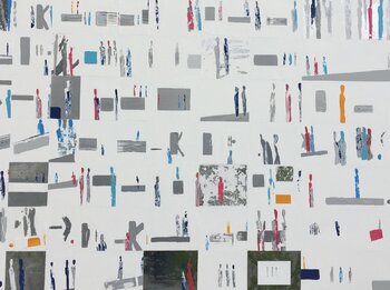 Nadine Hardys Absicht ist es, durch Farbe Harmonie in Ordnung oder Unordnung zu finden. Der in Frankreich lebende abstrakte Maler glaubt, dass man durch Farbe Zeichen, Symbole und Emotionen übersetzen kann. Hardy glaubt, dass dies sowohl eine Verbindung als auch ein Bezugspunkt zwischen dem, was wir sehen und dem, was wir fühlen, durch die Linse unserer persönlichen Erfahrung, kulturellen Wurzeln und Umwelt ist. Ihre kühnen Stücke werden aus Acryl auf Holz hergestellt.