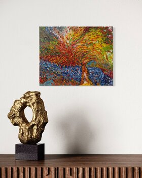 In diesem Werk habe ich meine Leidenschaft für die lebendige Energie des Lebens in jeden Wirbel und Spritzer Acryl gesteckt. Die halbabstrakten Formen fangen Bewegung und Transformation ein, als wäre die Natur selbst in einem kraftvollen Tanz gefangen. Ich wollte ein Gefühl der Erneuerung und des feurigen Geistes hervorrufen und Ihren Raum Wärme und dynamische Energie ausstrahlen lassen, die jeden Tag zu Wachstum und Staunen anregt.