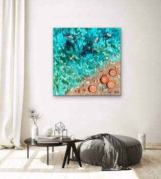 Ein Kunstliebhaber, Kauf getätigt am April 2023: "Sun-Kissed Bay", Acryl auf Leinwand , 31,5x47,2in