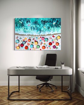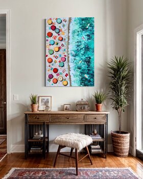 Ein Kunstliebhaber, Kauf getätigt am April 2023: "Sun-Kissed Bay", Acryl auf Leinwand , 31,5 x 47,2 in