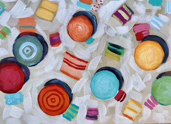 Ich fühle mich von Übergängen angezogen – zwischen Jahreszeiten, Stimmungen und Seinszuständen. Durch übereinander gelegte Punkte, Texturen und lebendige Farbpaletten versuche ich, flüchtige Momente einzufangen: das Schimmern des Lichts in der Dämmerung, die Ruhe nach dem Chaos oder das stille Echo eines lebhaften Traums.