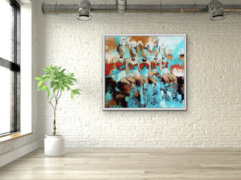 Our sitting playboy girls are made of oil painting on canvas. The painting depicts the colour turquoise and its nuances. Playboy girls are seated. Making modern art the ideal gift for family and friends. A lovely gift for family and friends, or for any girl's room.
