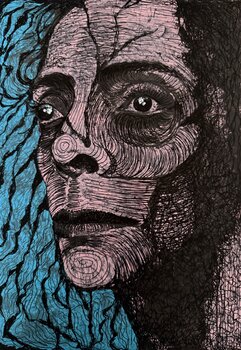 This work was inspired by the idea of inner contrast - the tension between calm and unrest, light and shadow. The face is divided into two emotional states, suggesting how complex and layered human feelings can be beneath a quiet surface.