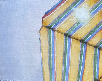 Dieses Werk fängt die stille Poesie eines alltäglichen Gegenstandes ein. Der gestreifte gelbe Stoff, gefaltet und sonnenbeschienen, wird zur Erinnerung – warm, vertraut, fast nostalgisch. Seine leuchtenden Farben drücken sich sanft gegen den ruhigen, leeren Raum daneben und schaffen so einen Dialog zwischen Anwesenheit und Abwesenheit. Das sanfte Sonnenlicht auf dem Stoff wirkt wie der letzte Hauch von Nachmittagslicht, eingefroren in der Zeit.