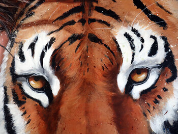 In dieser Arbeit habe ich versucht, wilde Schönheit und Zartheit zu vereinen. Der markante Kontrast zwischen Frau und Tiger, kombiniert mit den blauen Schmetterlingen, symbolisiert das harmonische Zusammenleben von Mensch und Natur. Mit Acrylfarben habe ich mit Realismus und Pop-Art gespielt, um die Intensität der Blicke und die Weichheit der Formen einzufangen und jeden Betrachter einzuladen, ein magisches Gleichgewicht zwischen Stärke und Zerbrechlichkeit… zu spüren. Dieses Gemälde wird in Ihnen eine Energie des Respekts und des Geheimnisses ausstrahlen.