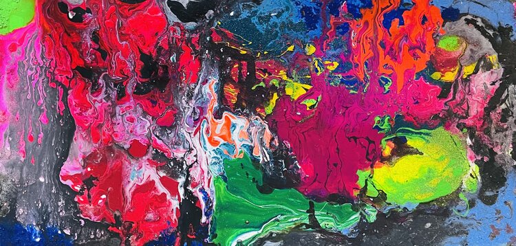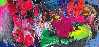 „Dieses abstrakte Werk entstand live am Strand – begleitet von Jazzmusik, durchwirkt von Wind, Sand und Licht. Die Natur selbst hat ihre Signatur hinterlassen und macht dieses Bild zu einem einzigartigen Zeitdokument künstlerischer und elementarer Energie.” Nicole Jutka