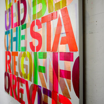 "Ich bin sehr erfreut! Was mich neben der Farbe und Komposition beeindruckt, ist, dass die Buchstaben einen dreidimensionalen Effekt erzeugen!"