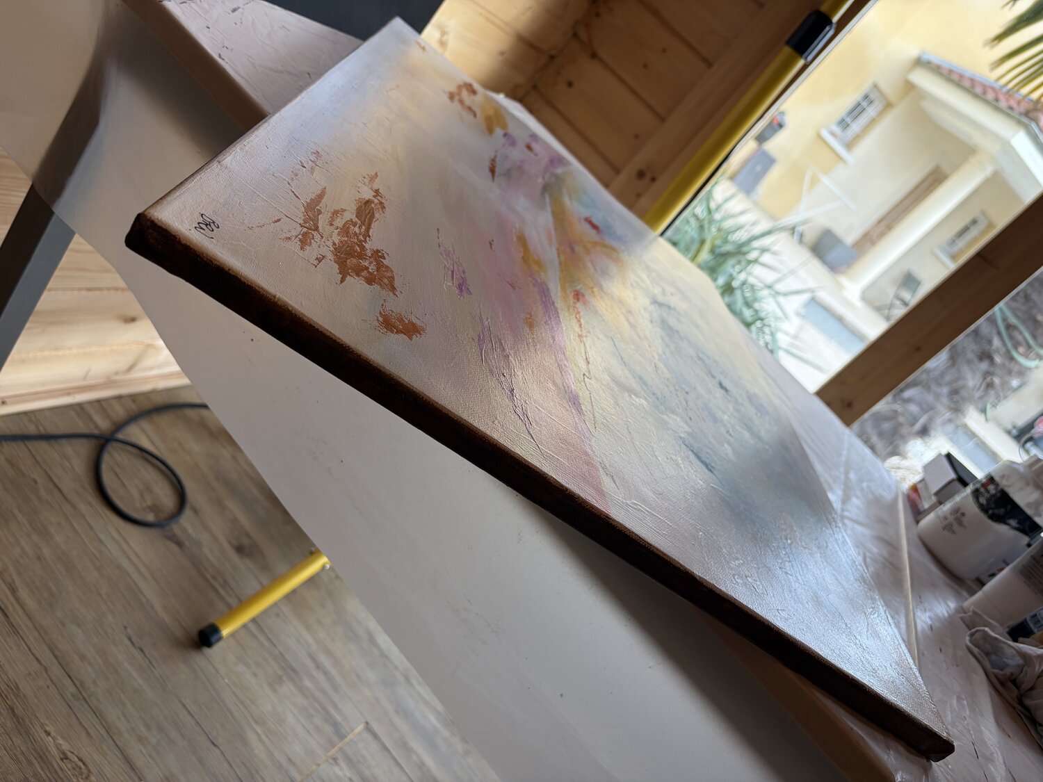 Werk auf Keilrahmen. Kann direkt aufgehängt werden. Rahmung auf Anfrage.