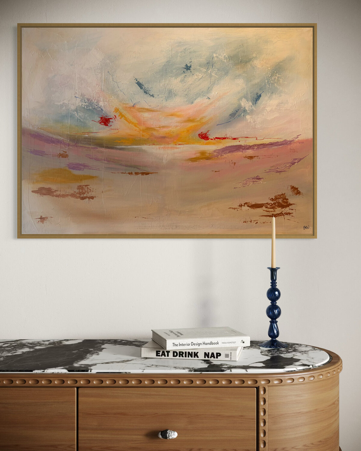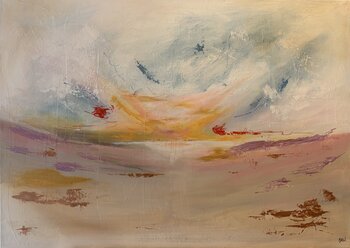 Während meine früheren Arbeiten absolute Stille ausstrahlten, fängt diese das Erwachen der Erde ein. Ich wollte diese gedämpfte Energie, die vom Boden ausgeht, durch Akzente in tiefem Rot und Ocker darstellen und so die Sanftheit meiner üblichen Beigetöne durchbrechen.