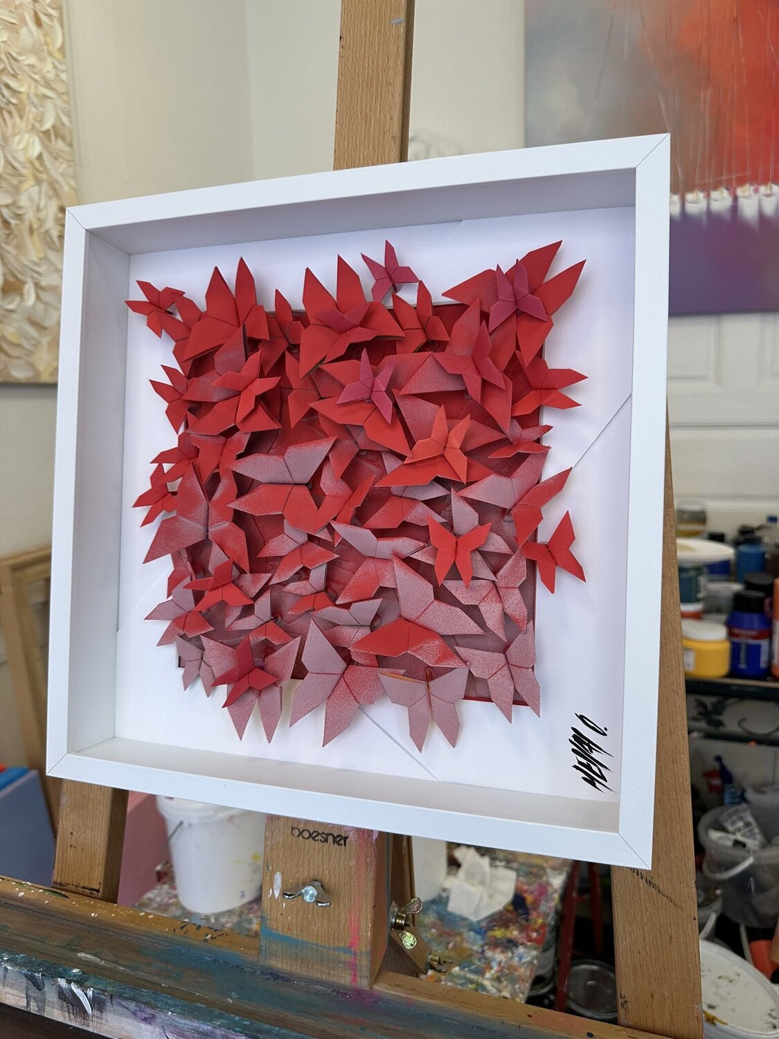 Ein Kunstliebhaber, Kauf getätigt am Dezember 2023: "Les oiseaux bleus... (ORIGAMI 2022)", Acryl, Collage auf Karton , 10,6 x 10,6 in
