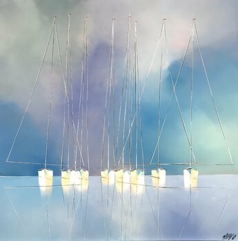 Ein Kunstliebhaber, Kauf getätigt am Dezember 2023: "Les oiseaux bleus... (ORIGAMI 2022)", Acryl, Collage auf Karton , 10,6x10,6in