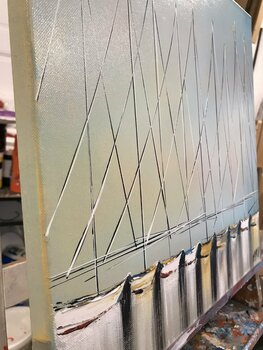 Ein Kunstliebhaber, Kauf getätigt am Dezember 2023: "Les oiseaux bleus... (ORIGAMI 2022)", Acryl, Collage auf Karton , 10,6 x 10,6 in