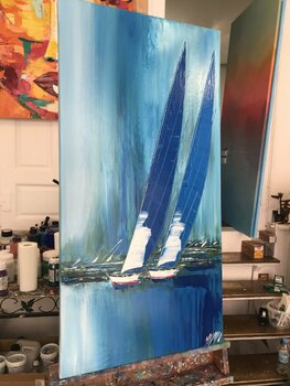 Ein Kunstliebhaber, Kauf getätigt am Dezember 2023: "Les oiseaux bleus... (ORIGAMI 2022)", Acryl, Collage auf Karton , 10,6x10,6in
