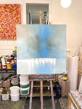 Ein Kunstliebhaber, Kauf getätigt am Dezember 2023: "Les oiseaux bleus... (ORIGAMI 2022)", Acryl, Collage auf Karton , 10,6x10,6in