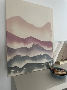 Mein Name ist Paola, ich bin Italienerin und lebe seit über zehn Jahren in Deutschland. Dank meines Vaters, einem autodidaktischen Künstler, bin ich seit meiner Kindheit von Kunst umgeben. Ich bin umgeben vom Duft der Ölmalerei aufgewachsen, mit bunten Händen und einem Herzen voller Neugier. Nach der Kunstschule habe ich Denkmalpflege studiert. Doch das Paradoxe: In einem Land wie Italien, das voller Kunst ist, schien es dafür keinen Platz zu geben. Ich bin auf der Suche nach einem Neuanfang nach Deutschland gekommen. Ohne Plan, aber mit Hoffnung. Hier fand ich berufliche Erfüllung, familiäres Glück und konnte während der Babypause wieder mit der Malerei beginnen: ohne Leistungsdruck, ohne Erwartungen. Meine Ausdrucksform habe ich in der Acryltechnik gefunden. Zwischen Minimalismus und Abstraktion, überwiegend monochromatisch. Meine Kunst hat keinen Zweck. Es erklärt nichts, es lehrt nichts. Und doch spiegelt es oft – allein – meine eigenen inneren Probleme wider.