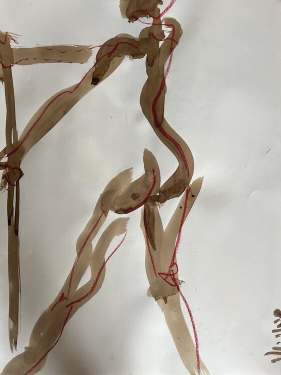 In dieser Arbeit, die ich für mehr Sensibilität mit der linken Hand ausgeführt habe, fange ich die Essenz von Einfachheit und roher Emotion mit minimalistischen Mitteln ein, indem ich Walnussbraun und Pastell verwende. Die fließenden Linien und erdigen Farbtöne zeigen eine schlanke menschliche Figur, die sowohl Stärke als auch Verletzlichkeit ausdrückt. Jeder Strich ist eine Erkundung der menschlichen Verfassung, eine Einladung, über die Komplexität… nachzudenken, die sich hinter reinen Formen und subtilen Farben verbirgt. Diese Zeichnung verleiht jedem Wohnraum einen Hauch von Finesse und emotionaler Tiefe und regt die Fantasie und Reflexion an.