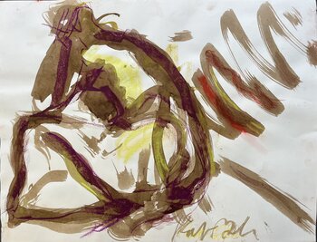 In dieser Arbeit habe ich Einfachheit und rohe Energie mit Lila- und Walnusspastellfarben erforscht. Meine Absicht war es, die Vergänglichkeit und Flüchtigkeit menschlicher Emotionen einzufangen, indem ich mit minimalen Strichen und ineinandergreifenden Farben die in der Einfachheit verborgene Komplexität widerspiegelte. Dieses Stück ist eine Hommage an die pure Ausdruckskraft und verleiht jedem Raum kontemplative Dynamik und eine starke visuelle… Wirkung.