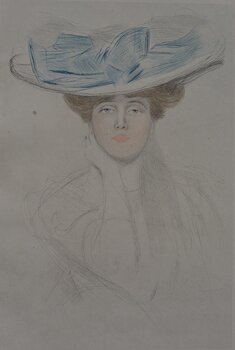 Paul César Helleu arbeitete mit Ölfarben, Pastellkreide und Kaltnadelradierung und schöpfte dabei aus seiner Erfahrung in den eleganten Kreisen der Belle Époque. Sie verwendete fließende, ausdrucksstarke Linien und einen leuchtenden Umgang mit Licht, um die flüchtige Anmut und Eleganz der Damen der High Society einzufangen. Ihre Kunst strahlt Raffinesse und wehmütige Nostalgie aus und entführt den Betrachter in eine verträumte, goldene Ära.