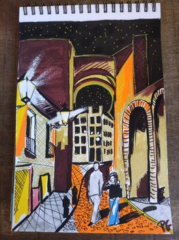 Mit diesem Acrylgemälde wollte ich die lebendige Seele einer Nacht in Granada einfangen und Realismus mit einem Hauch von magischem Licht verbinden. Jedes Licht- und Schattenfragment erzählt eine Geschichte voller Emotionen und Geheimnisse und lädt Sie ein, die Wärme und Geschichte dieses Ortes zu spüren. Dieses Kunstwerk wird Ihrem Zuhause eine sanfte und fesselnde Energie verleihen, erfüllt von Leben und Nostalgie.