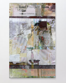 Iconographic and visual references subsequently made an appearance in this painting made of oil and digital pigment prints on canvas. Combining both overpainted material and large, gestural brushwork as a pictorial language, Vahlefeld’s work combine differing modes of production. The surface of the canvas enacts… push-pull through splashes of paint, vehement strokes, and the violence that the hand imposes. Peter continues to establish a dramatic relationship with painting and printing – colorful, gestural, expressionistic, and sometimes bordering on complete abstraction.
