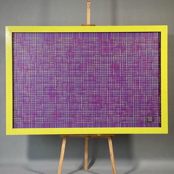 Vor dem Einfrieren des Ganzen auf der Leinwand hat Philippe Fares die Metallplatten leicht verschoben, um ein dreifarbiges Netzwerk zu erhalten, das in der Ebene des Gemäldes kriecht.…