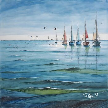 Ich wollte die Süße eines schwebenden Augenblicks einfangen, jenen Moment, in dem Stille den Horizont umhüllt. Die Segelboote, eingefroren in impressionistischem Licht, verkörpern inneren Frieden und Flucht. Dieses digitale Bild verbindet Leichtigkeit und Tiefe und lädt zum Träumen ein. Stellen Sie sich diese wohltuende Meeresbrise, diese lebendige Ruhe vor, die Gelassenheit und Inspiration in Ihren Raum bringt.