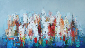 Dann gibt es dennoch eine Lösung, denn der Künstler arbeitet auch auf Kommission. Er kann stilistische Elemente, die Ihnen gefallen, in einem für Sie kreierten Werk einfließen lassen. Sie können dabei die Dimensionen bestimmen und wir verhandeln den Preis für Sie.