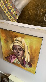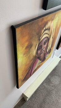 In dieser Acrylkreation habe ich meine ganze Seele darauf verwendet, die Essenz von Stärke und Anmut einzufangen. Indem ich bildende Kunst mit expressionistischen Tönen verschmelze, ermutige ich die Figur mit einem Blick, der Bände spricht, ihre Haltung ist ein Echo der Widerstandsfähigkeit. Die warme, erdige Farbpalette und der impressionistische Hintergrund umhüllen sie mit einer Aura der Ruhe. Dieses Kunstwerk ist meine Ode an den unbezwingbaren… Geist, der jedem Raum eine lebendige Energie verleiht, die Kultur zelebriert und zur Selbstbeobachtung inspiriert.