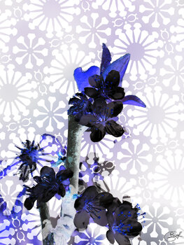 Der Zweig wird zu einem leuchtenden Spektrum, seine umgekehrten Blüten wie keimende Ideen. Das nun klare Pflaster erinnert an eine Himmelskarte, eine Route ins Unbekannte.