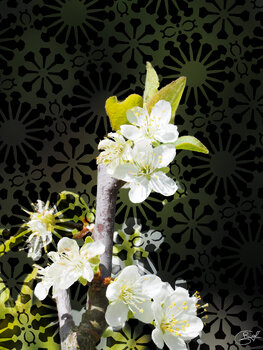 Der Zweig erhebt sich wie eine intakte Erinnerung, weder verändert noch idealisiert. Die weißen Blüten sind Ausbrüche der Klarheit, die dunklen Zonen des Vergessens.