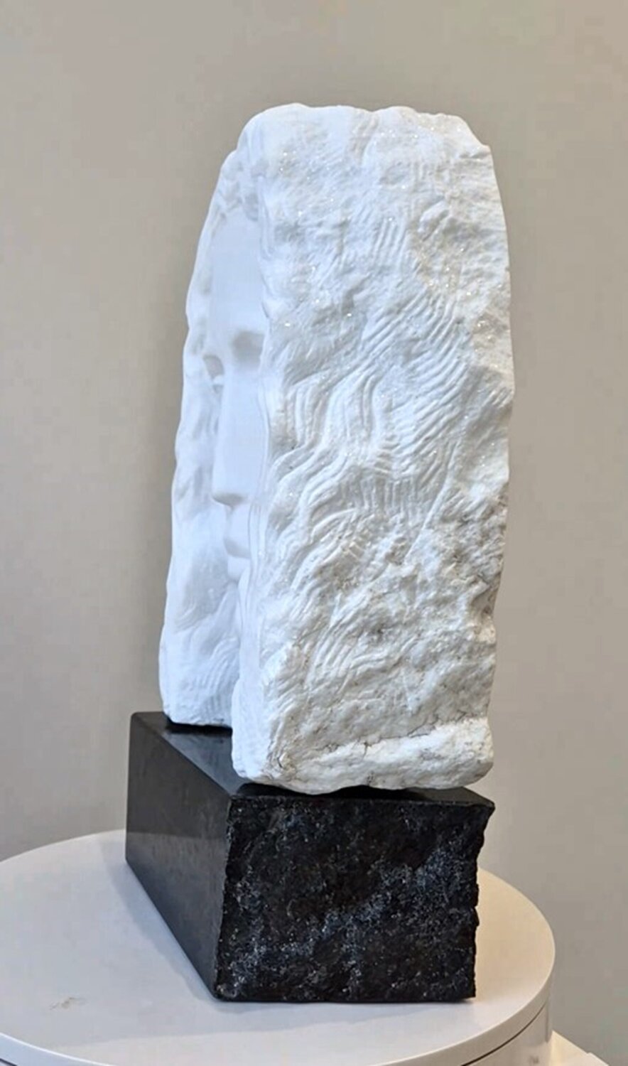Diese originale Marmorskulptur auf einem Gabbro-Sockel ist eines der neuesten Kunstwerke des talentierten bulgarischen Bildhauers Rasho Mitev. Mit diesem Werk fängt er heitere Kraft und zeitlose Schönheit durch sanfte, fließende Linien in Marmor ein. Die Büste verkörpert ruhige Introspektion und stilles Selbstvertrauen und lädt den Betrachter ein, sich tief mit seiner inneren Anmut zu verbinden. Ihre Präsenz verleiht jedem Raum eine kontemplative,… friedliche Energie und zelebriert sowohl Einfachheit als auch tiefe Emotionen, die in unvergänglichen Stein gemeißelt sind.