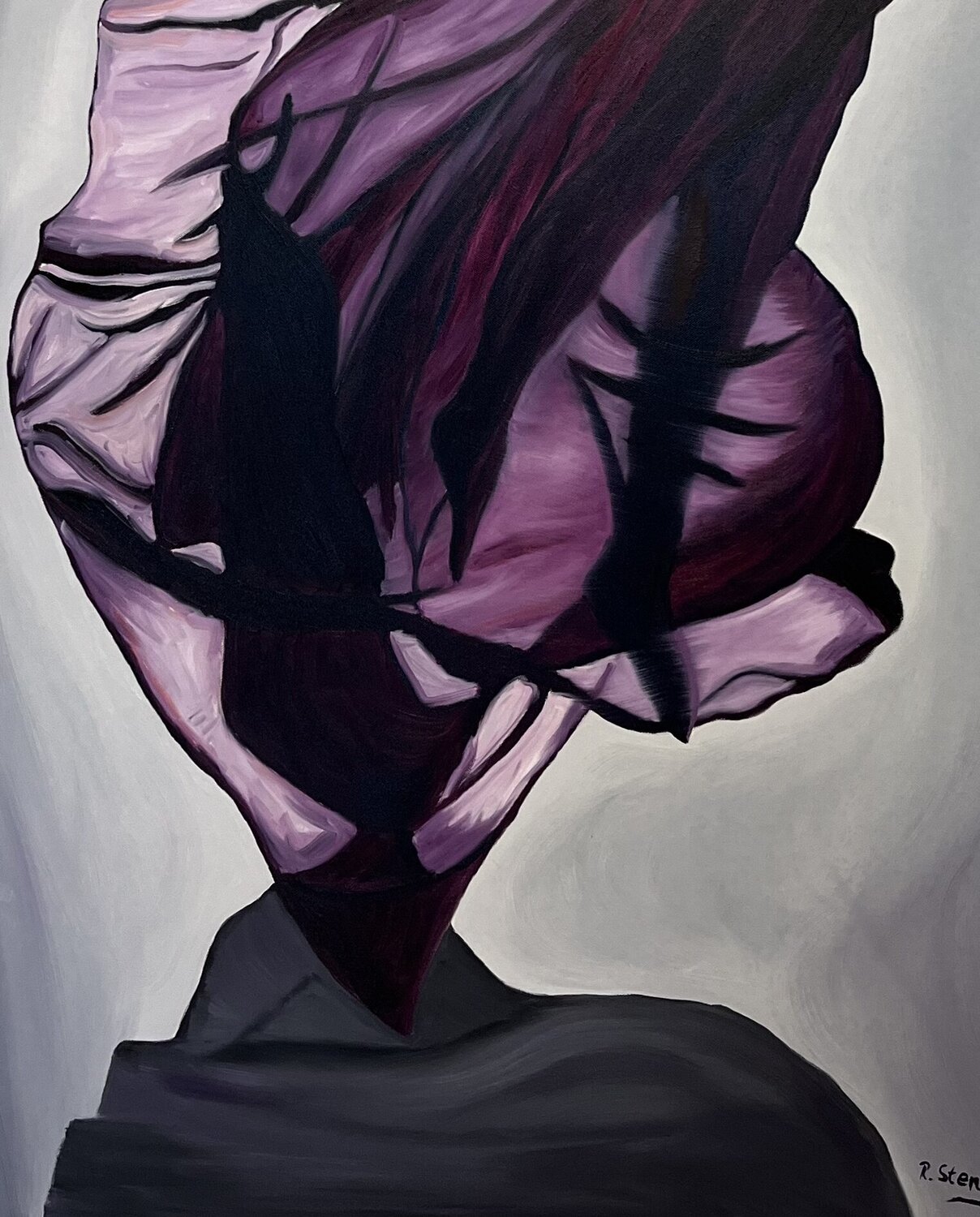 In diesem Kunstwerk habe ich die dynamische, fast fließende Bewegung einer Balletttänzerin mit Ölfarben eingefangen. Ihr eleganter, in tiefen Lila- und Schwarznuancen gehaltener Rock scheint im Wind zu spielen, während sie majestätisch, doch voller Anmut schwebt. Die Atmosphäre des Bildes strahlt eine starke, fast poetische Energie aus, die jeden Raum bereichert. Ich wollte die Schönheit und Stärke des Balletts hervorheben, die die Zuschauer inspirieren… und berühren kann.